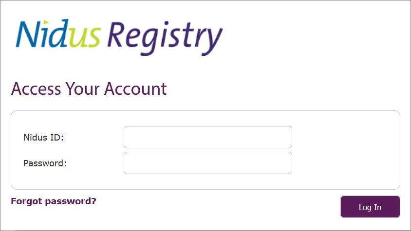 Log In to access the Registry Account, requires the Nidus ID (not your email) and password. If you are ready, click image below or the Log In button at the home page.